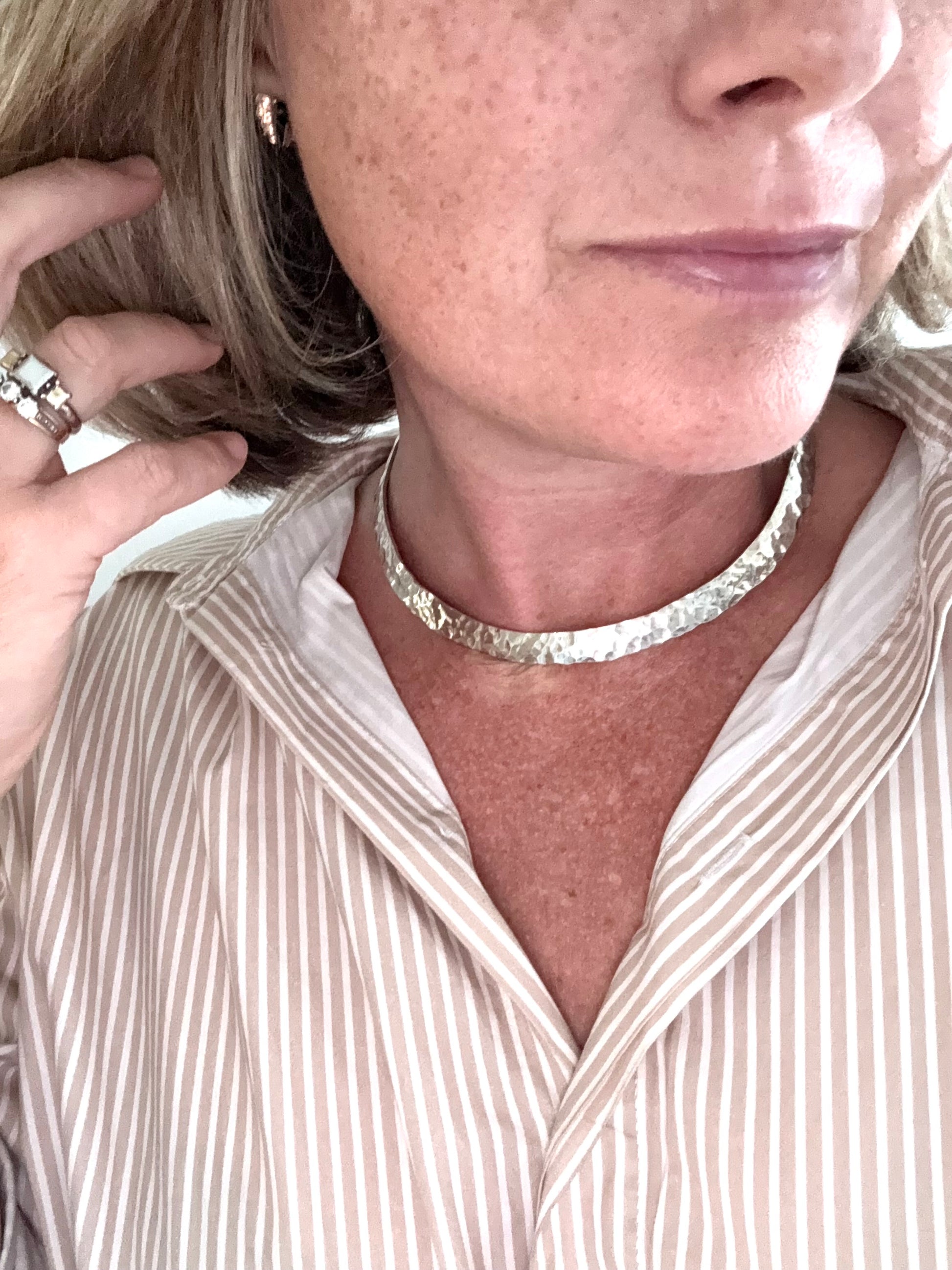 .1970s .990 artisan made hand made fine silver choker neck cuff bevelled solid silver art neckpiece