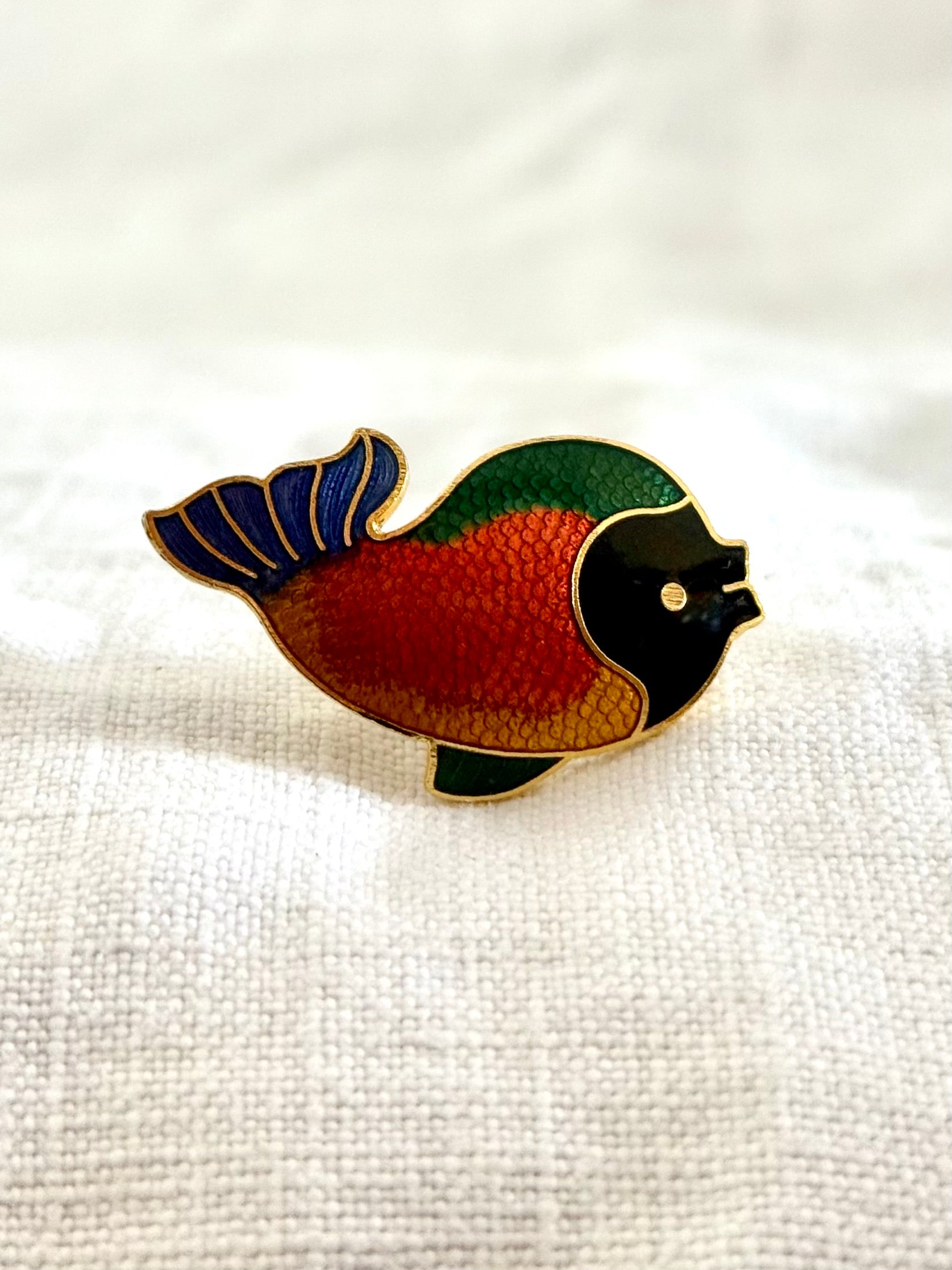 .1970s vintage Black Face colourful enamel fish quirky gold tone bright enamel fun fish costume brooch