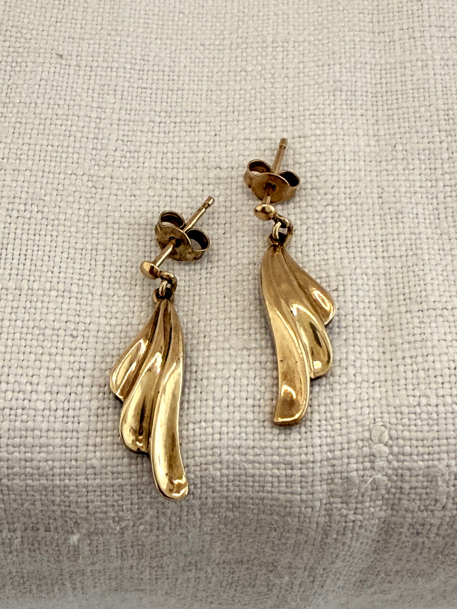 .1980s .375 wing drop solid 9ct gold swinging post stud dangle earrings