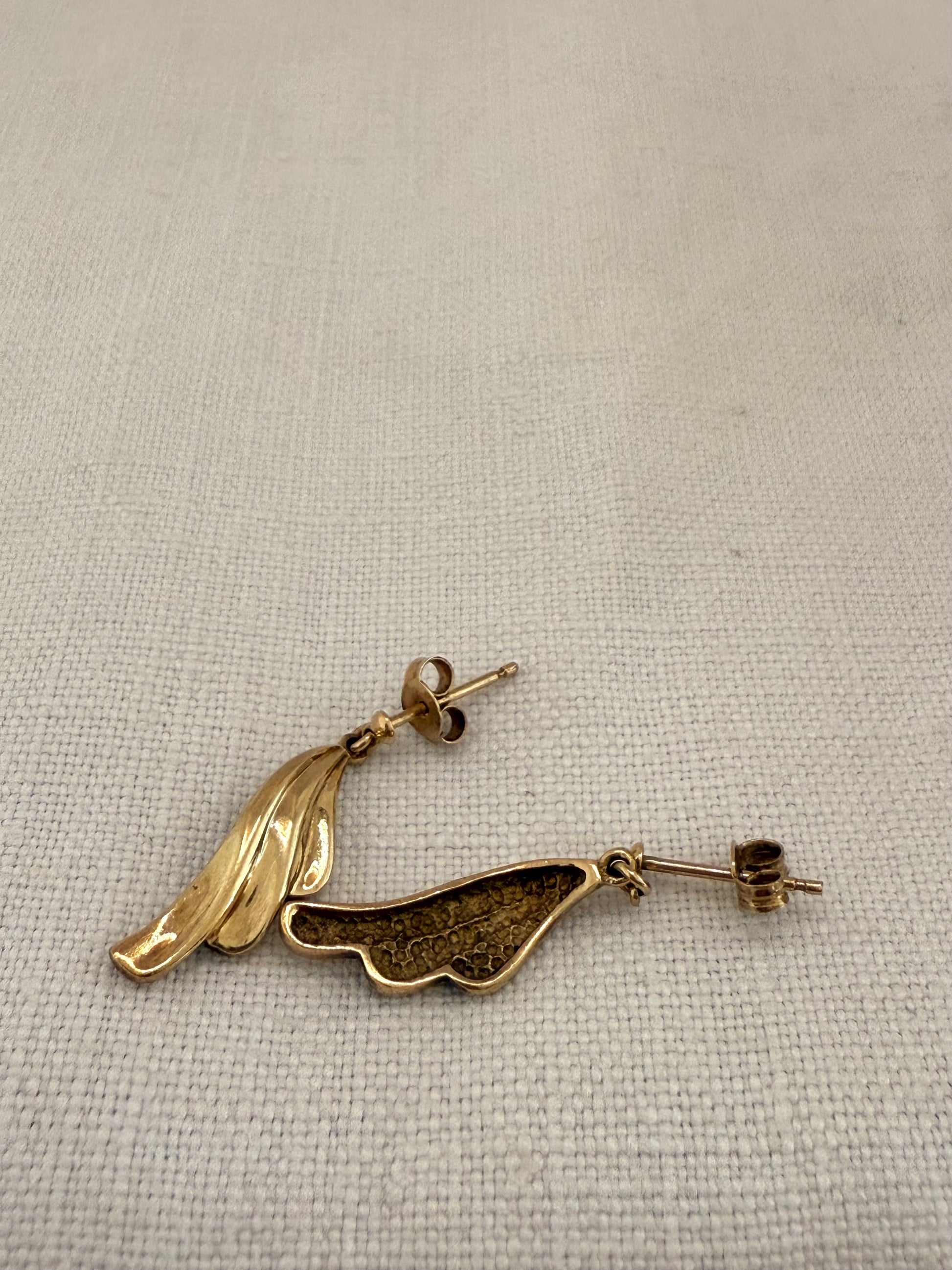 The solid gold earrings holds a romantic wing drop that sways from a 9ct gold earring post stud.