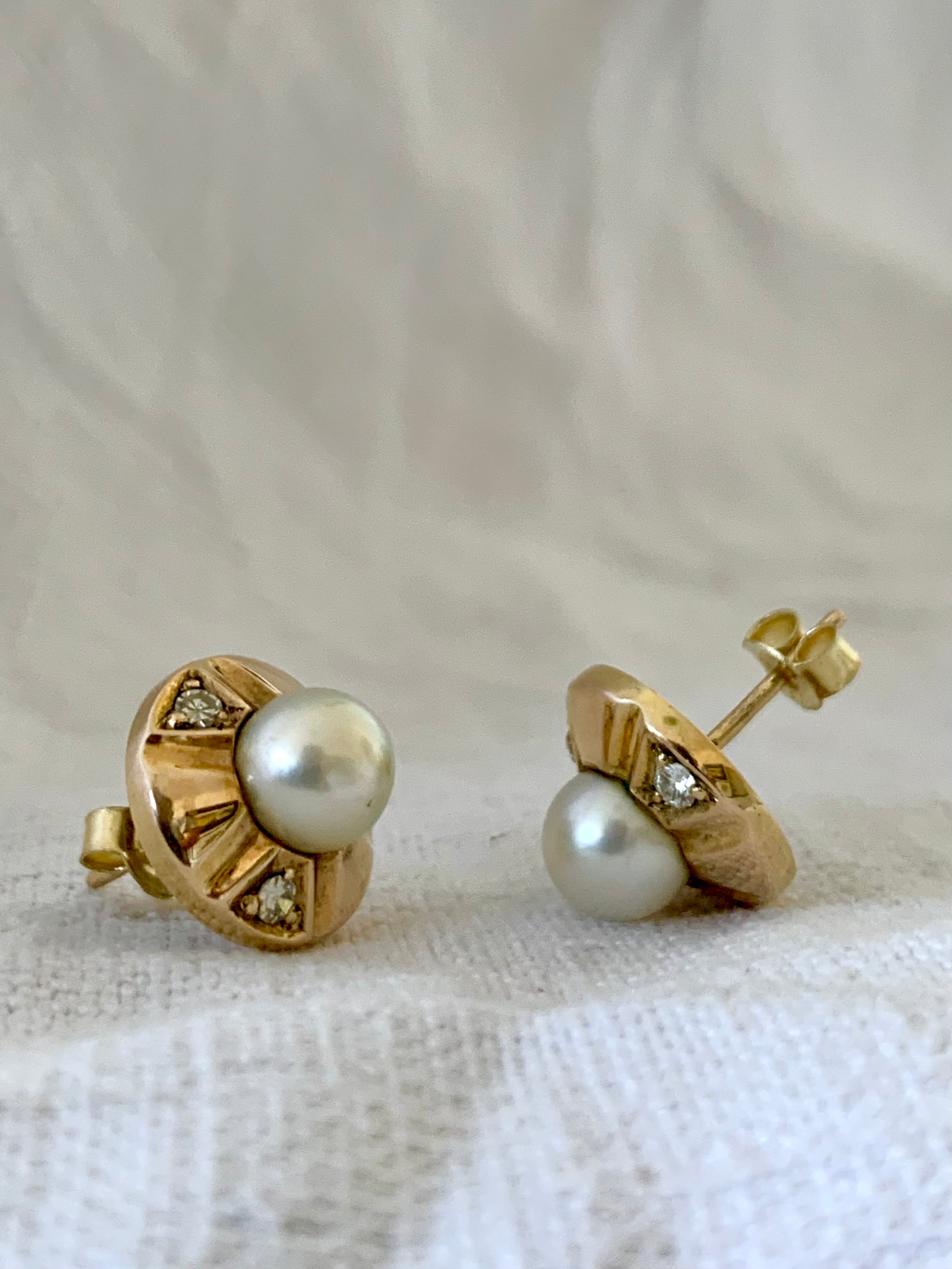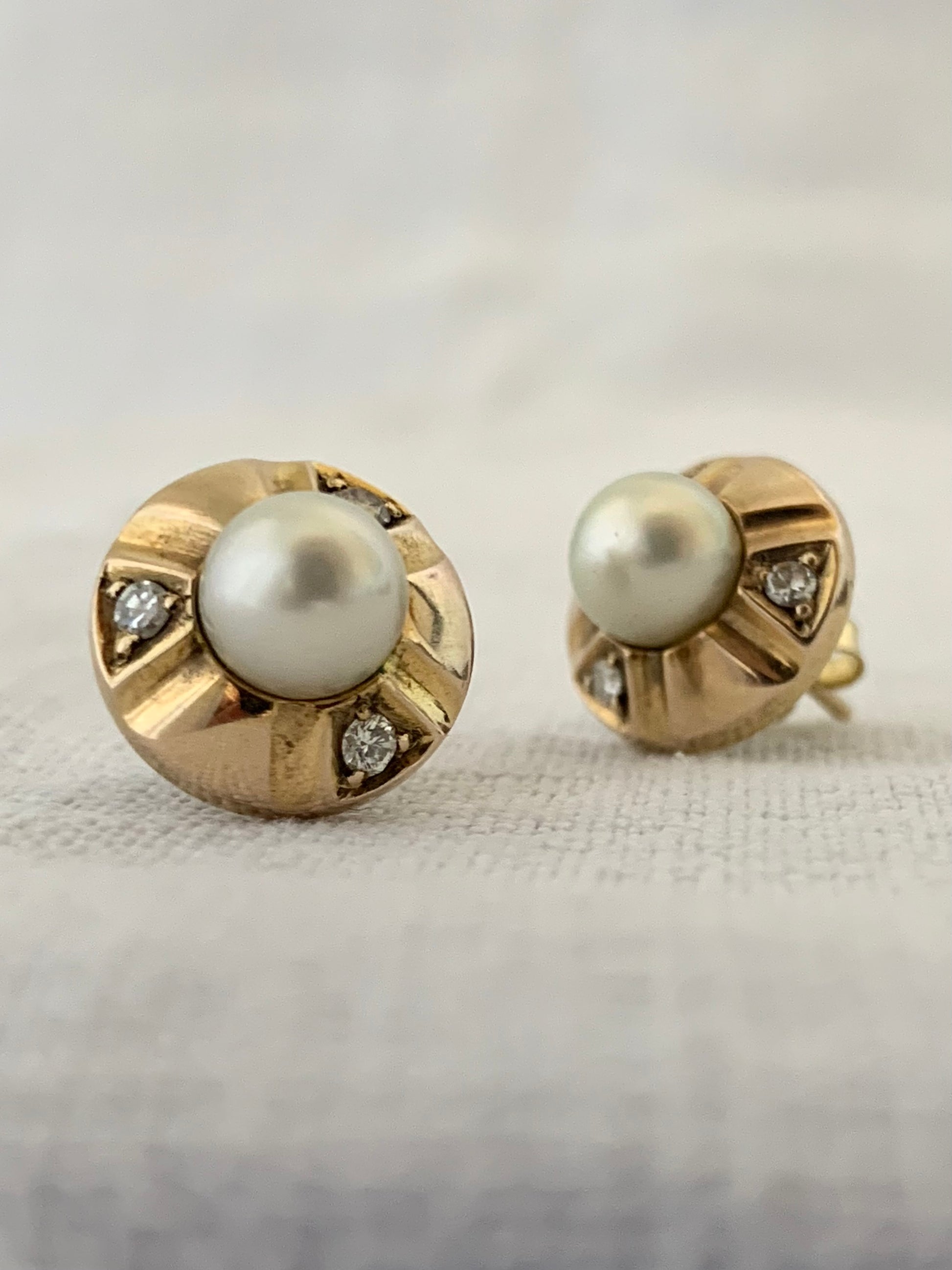.375 2 Pearls 6 diamond classic 9ct yellow gold luxury circle post stud push in earrings