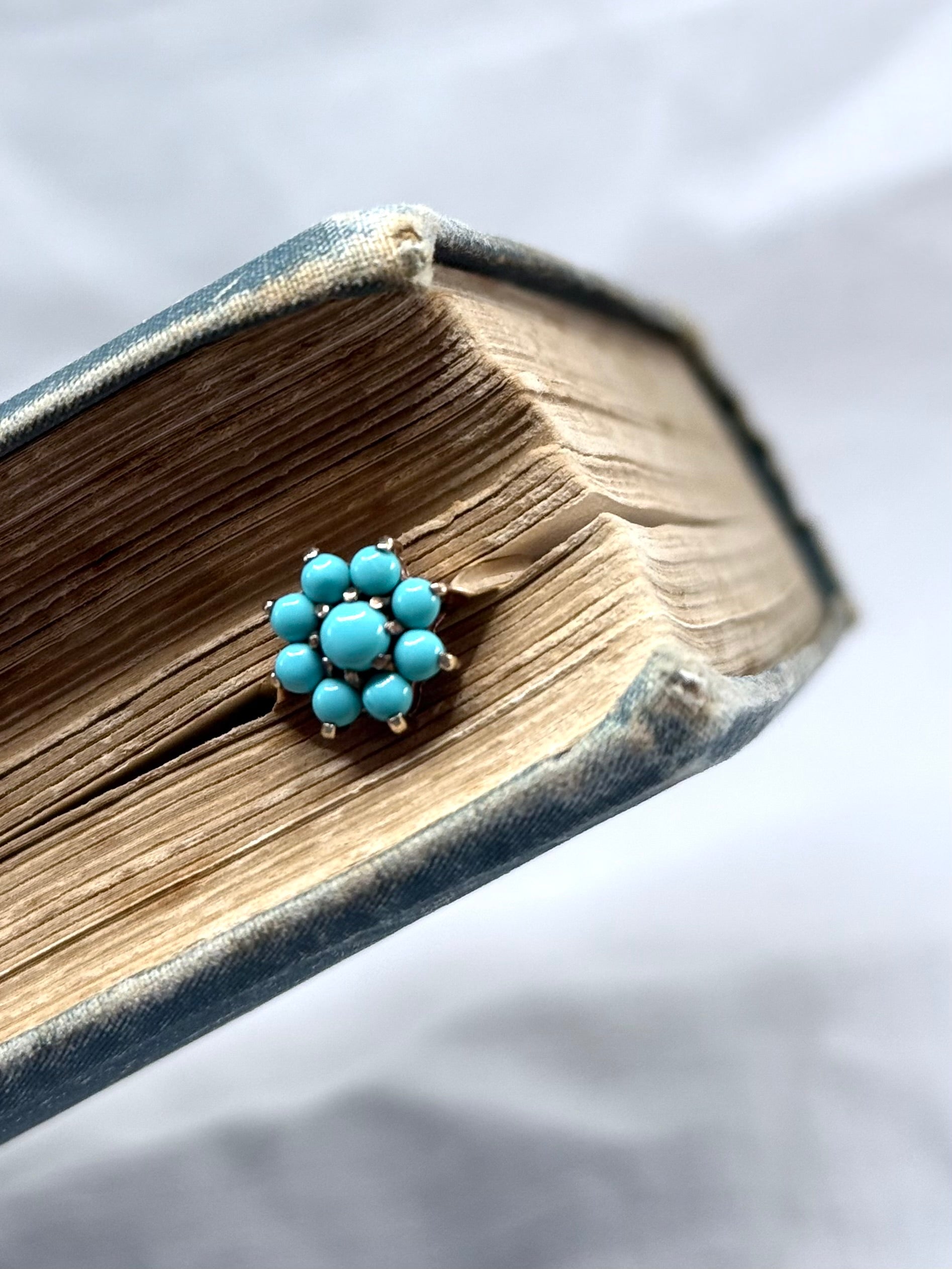 .375 .9ct gold cluster turquoise flower classic precious gemstone gold ring
