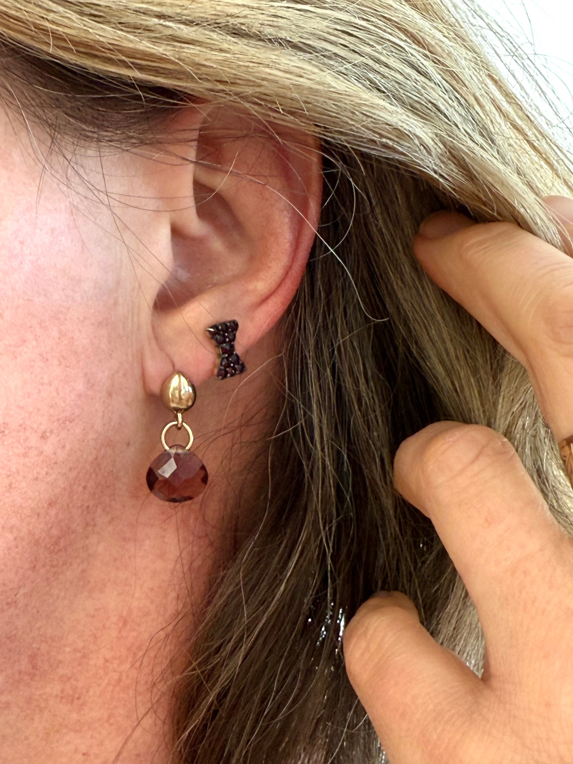 Perfect and delicious, these red wine, royal pomegranate toned Garnet gemstone drop earrings are luxurious and so very pretty. The Garnet gemstones are all over faceted and teardrop in shape and suspended from teardrop shaped gold nugget earring posts. The earrings are lovely and well weighted with dimensions of 23mm drop x 11mm wide. They are supplied with comfortable wear silicon butterfly findings.