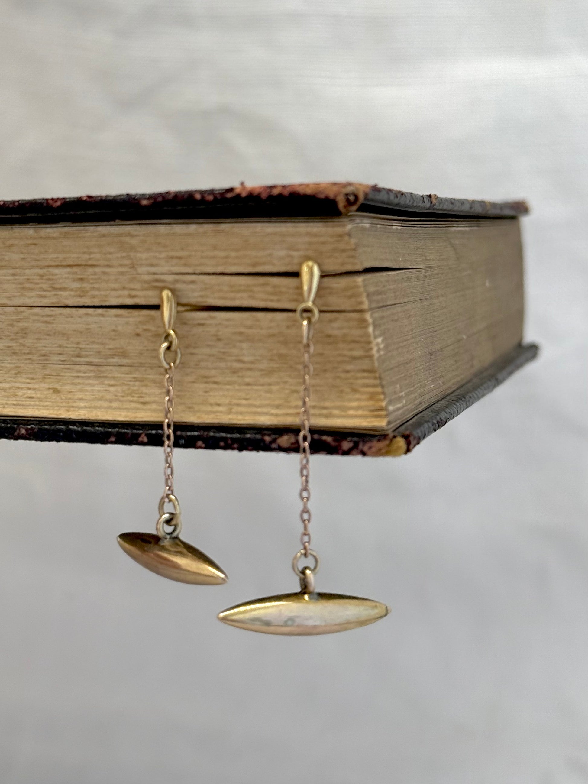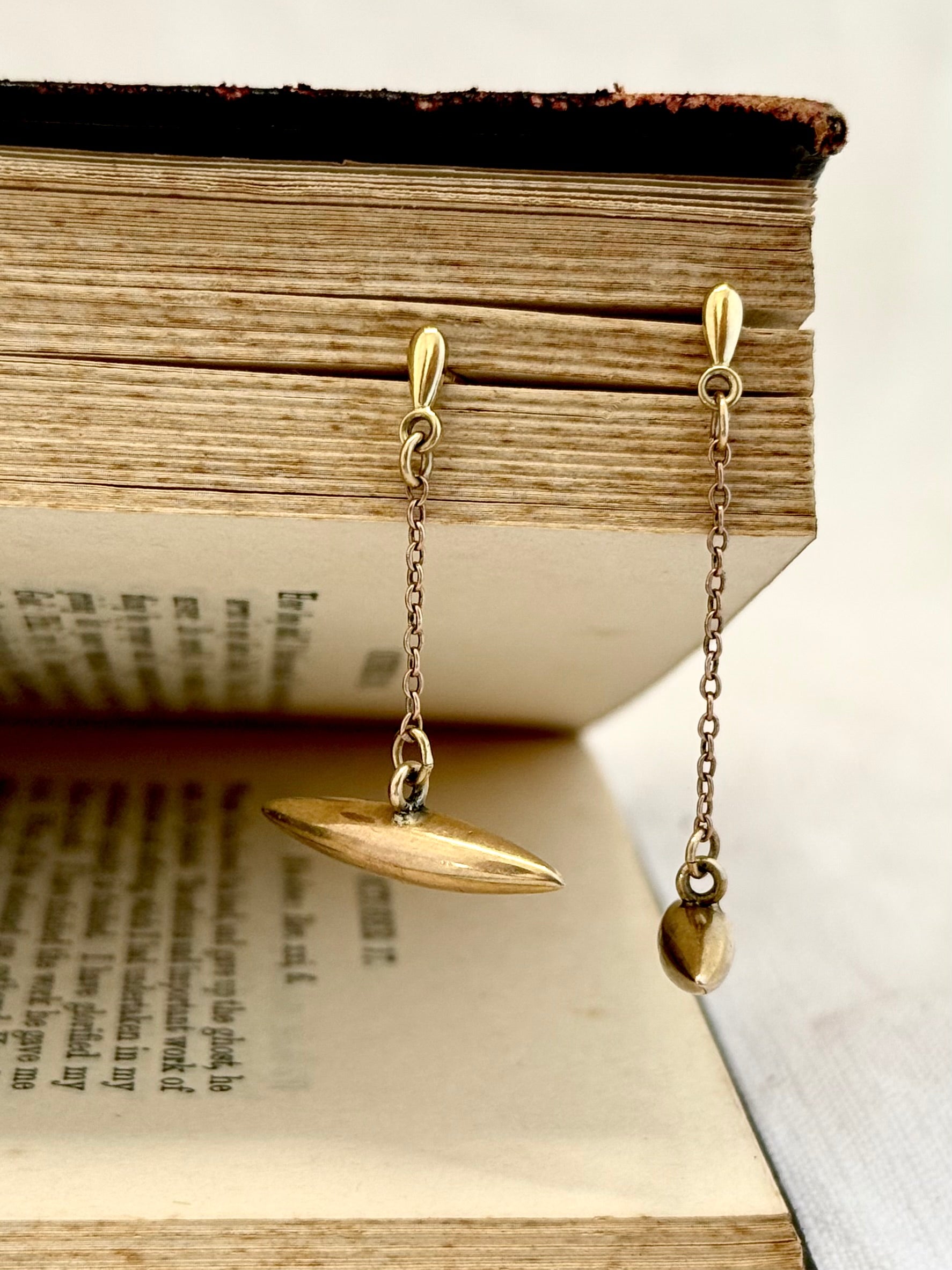 A one of kind quirky pair of 9ct gold dangle earrings that are upcycled from vintage 9ct gold torpedo shaped cufflink ends.