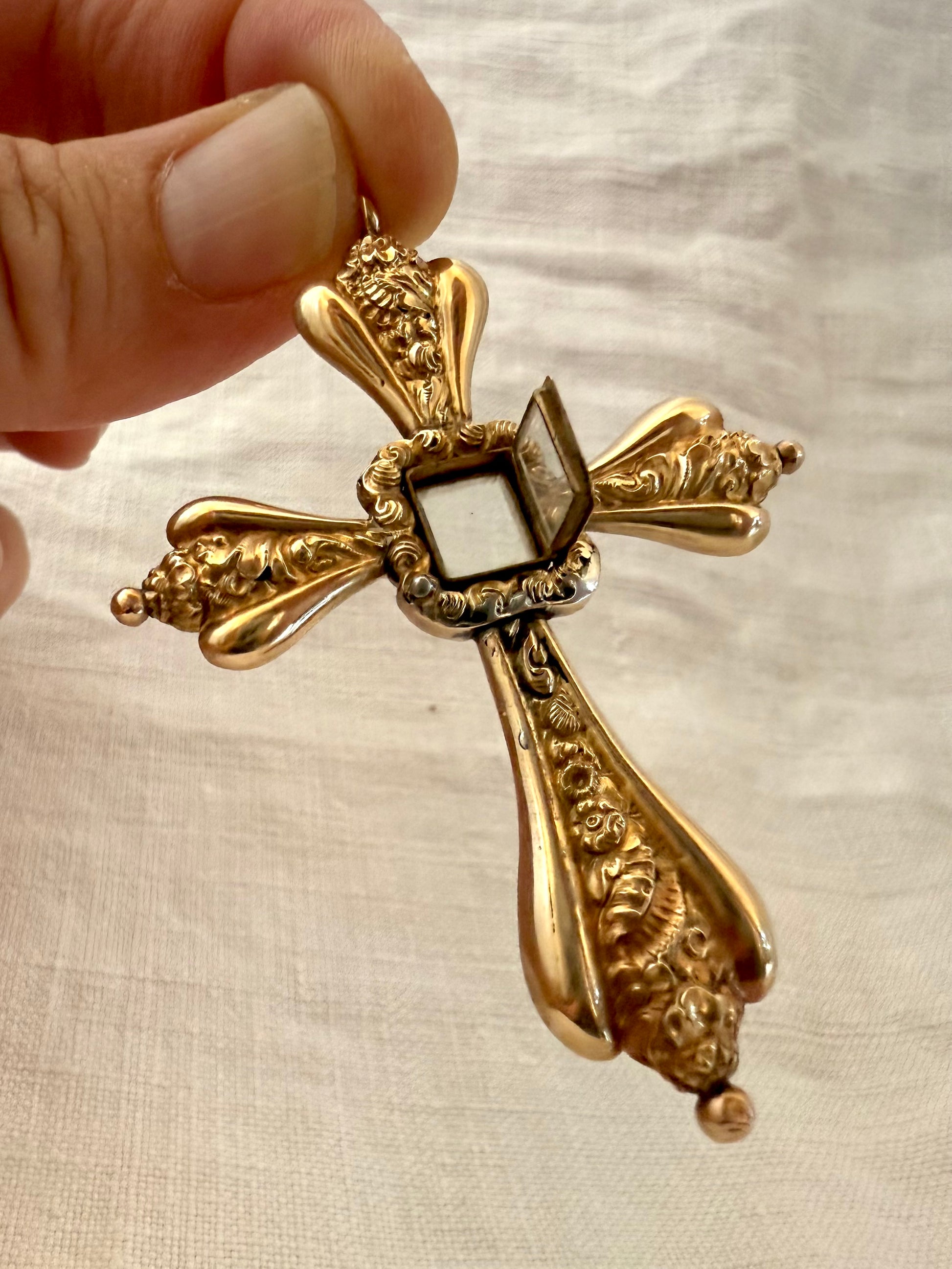 .585 14ct 1800s era antique large Gold high carat repousse cross locket oversized mourning locket rare large cross pendant