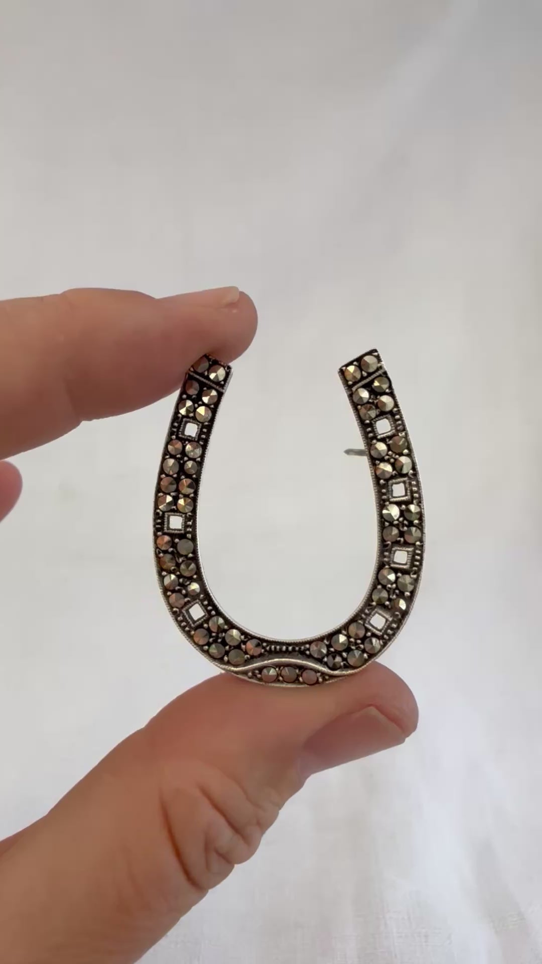 .925 .1910s antique Edwardian lucky horseshoe sterling silver Marcasite sweetheart brooch