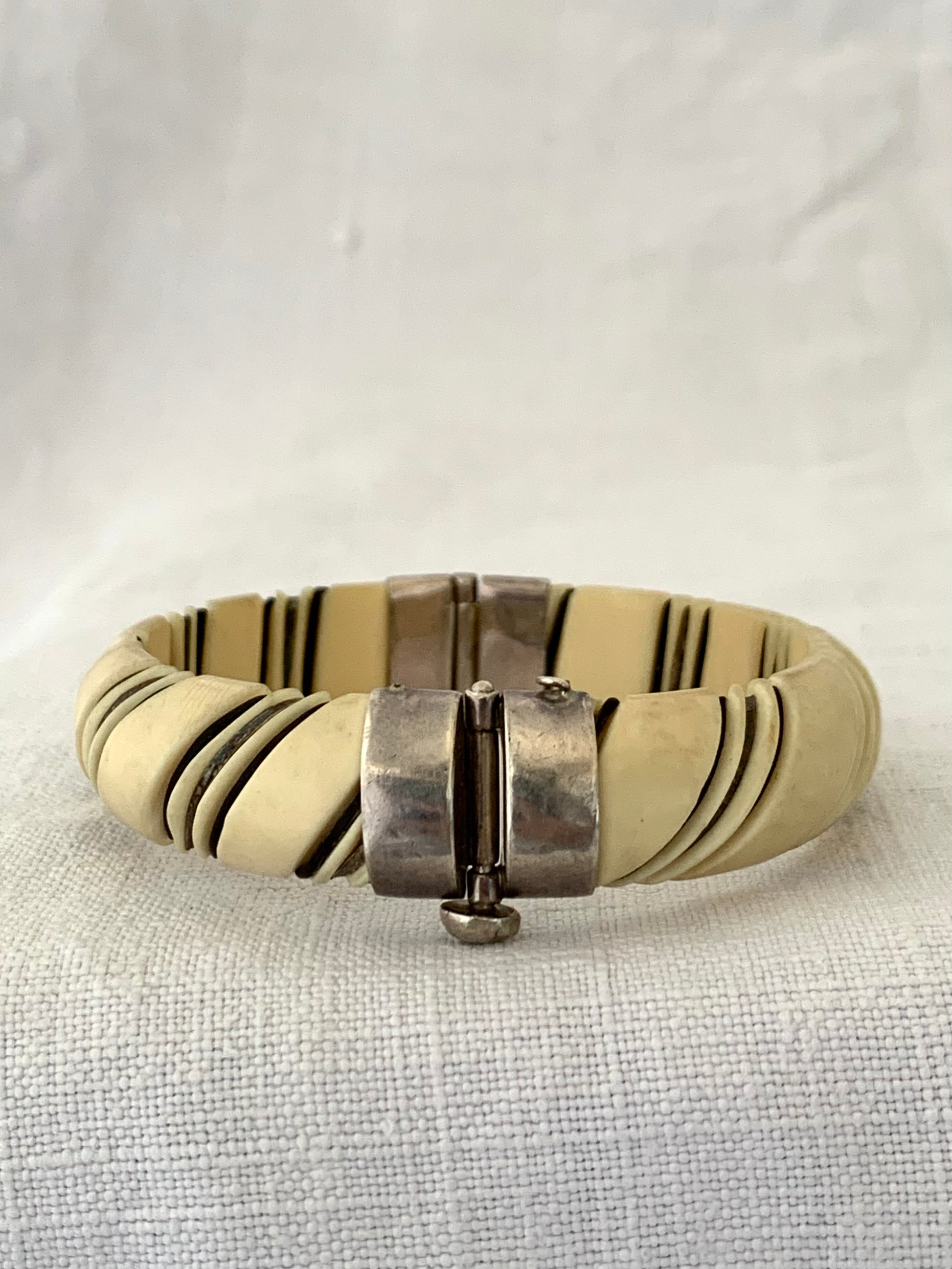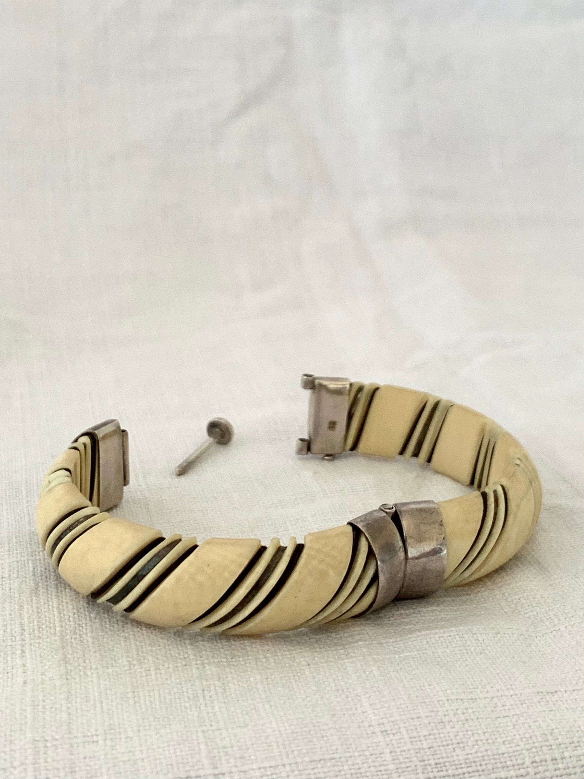 .925 1960s 1970s pre ban ivory bone sterling silver wire and elephant hair wrapped clasp bangle