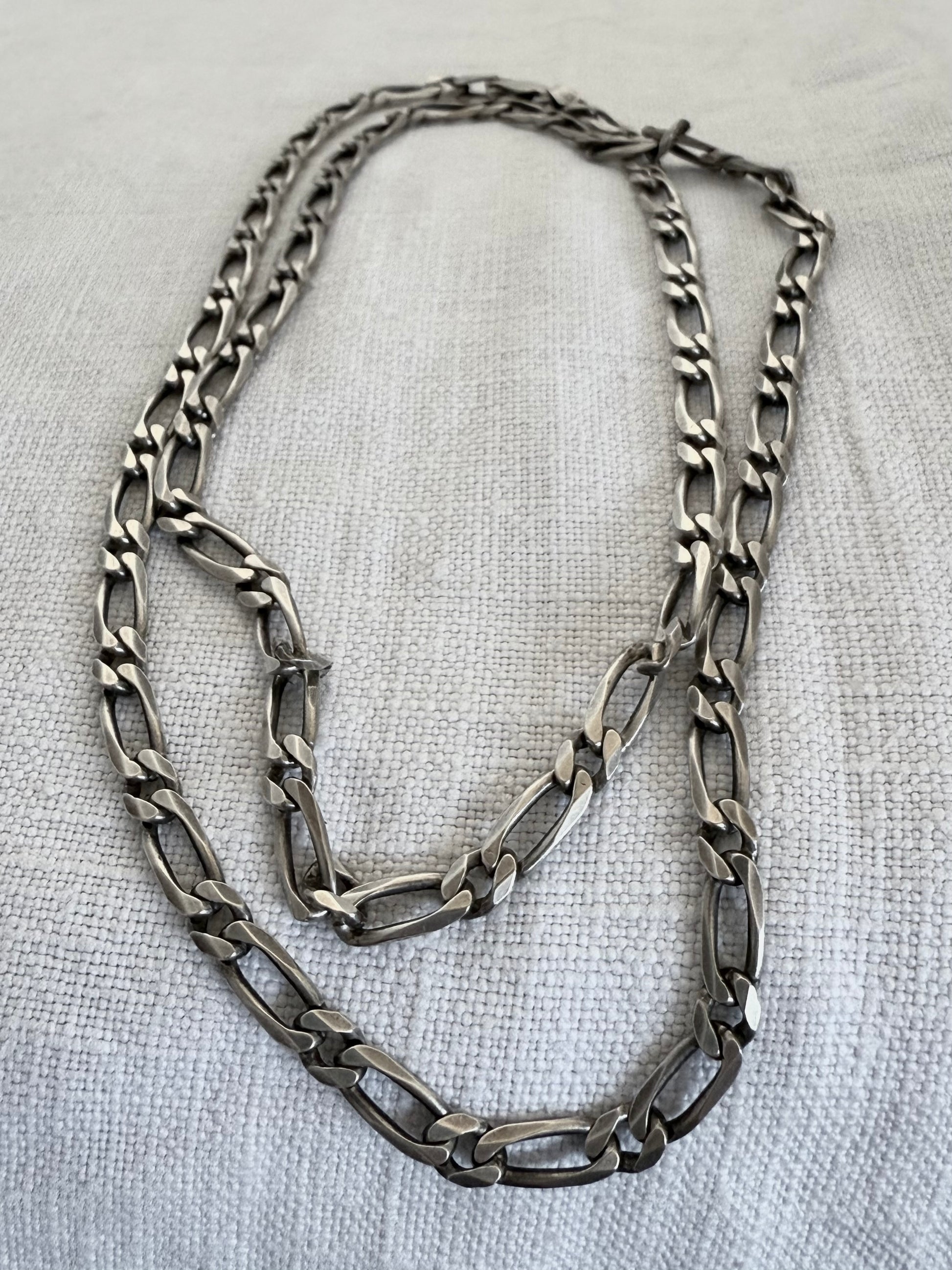 .925 1970s 60cm long retro perfect sterling silver chunky link well made Figaro chain modernist chain link necklace