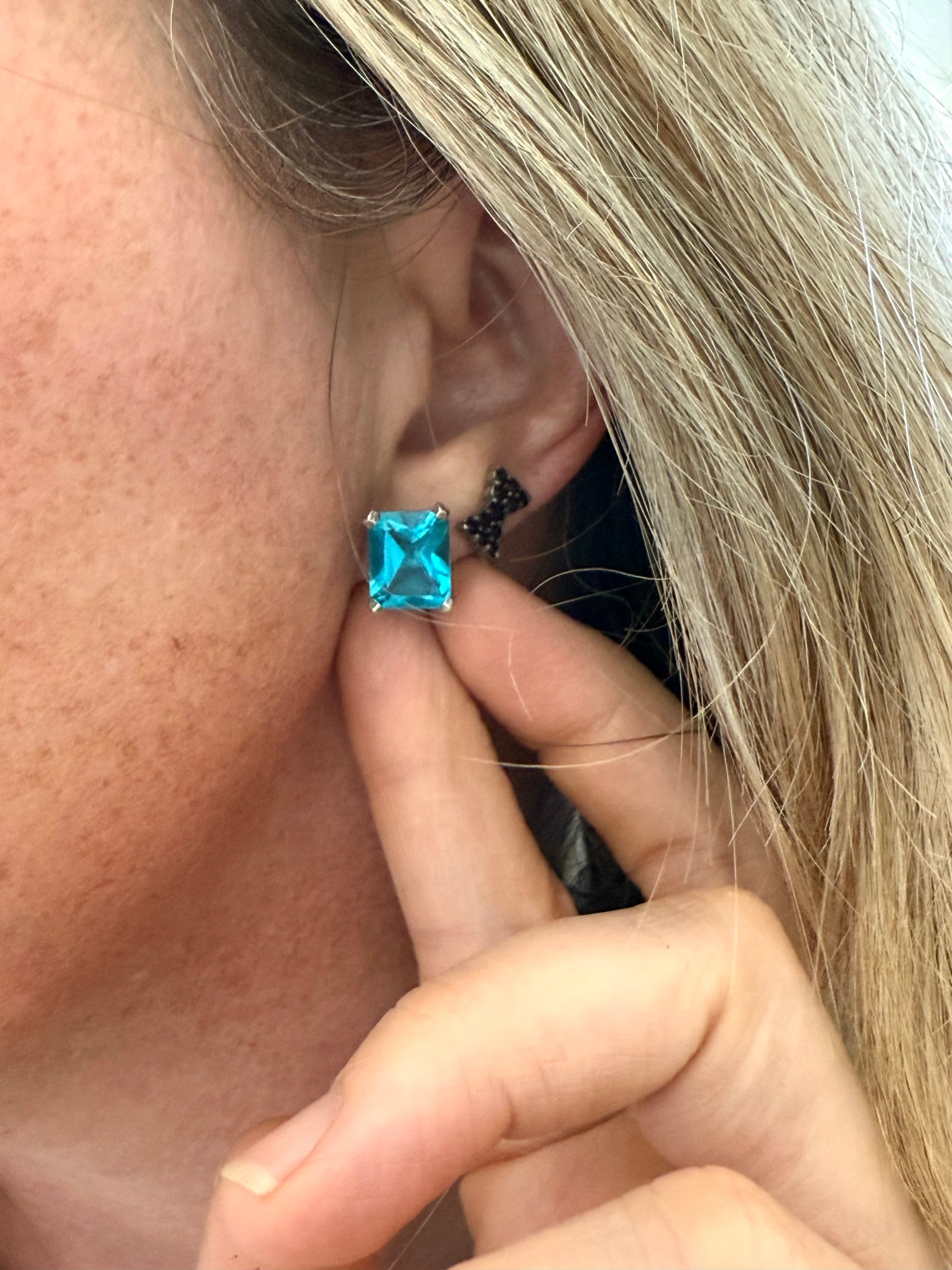 .925 1990s blue gemstone modernist large rectangular post stud modern sterling silver earrings