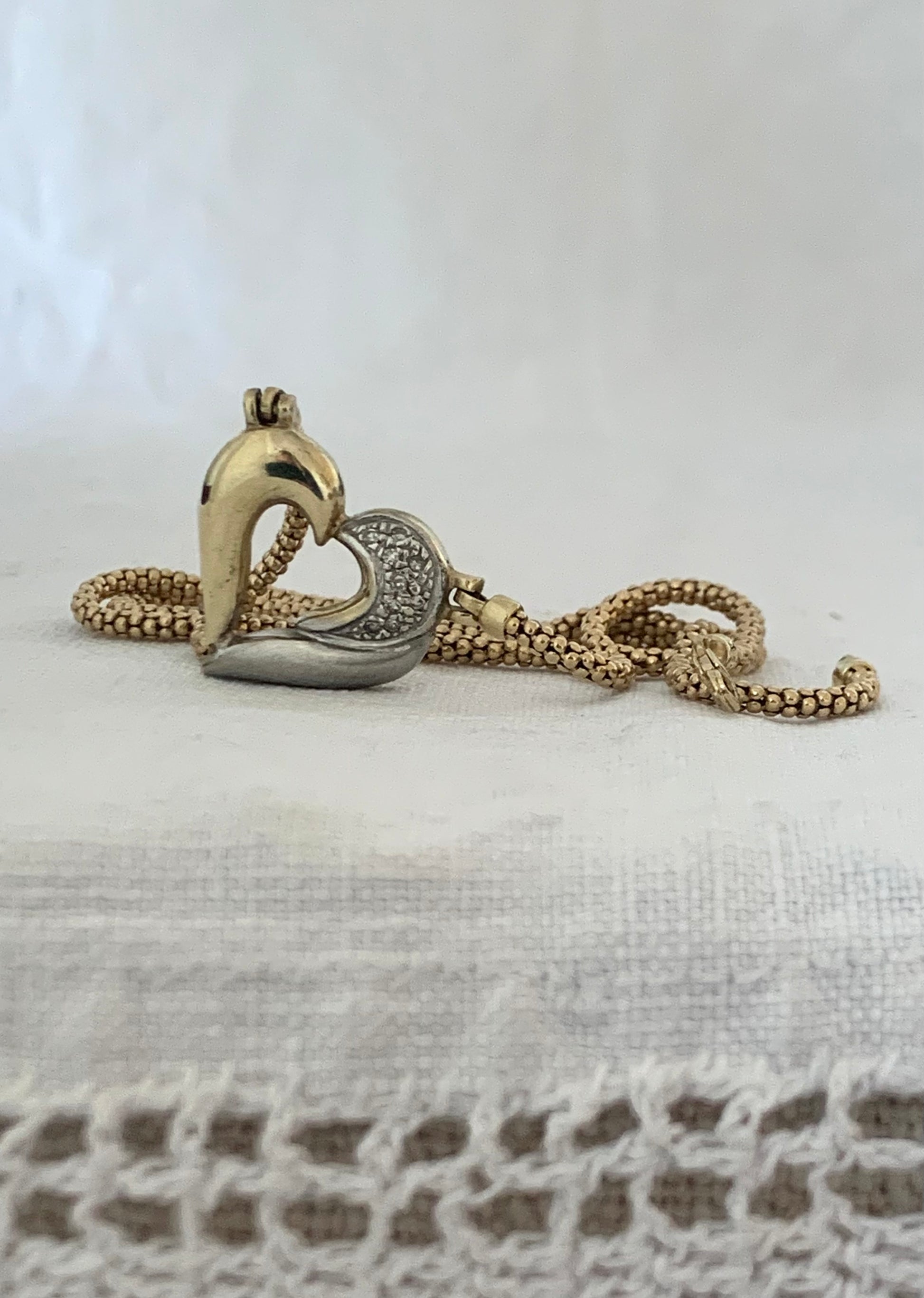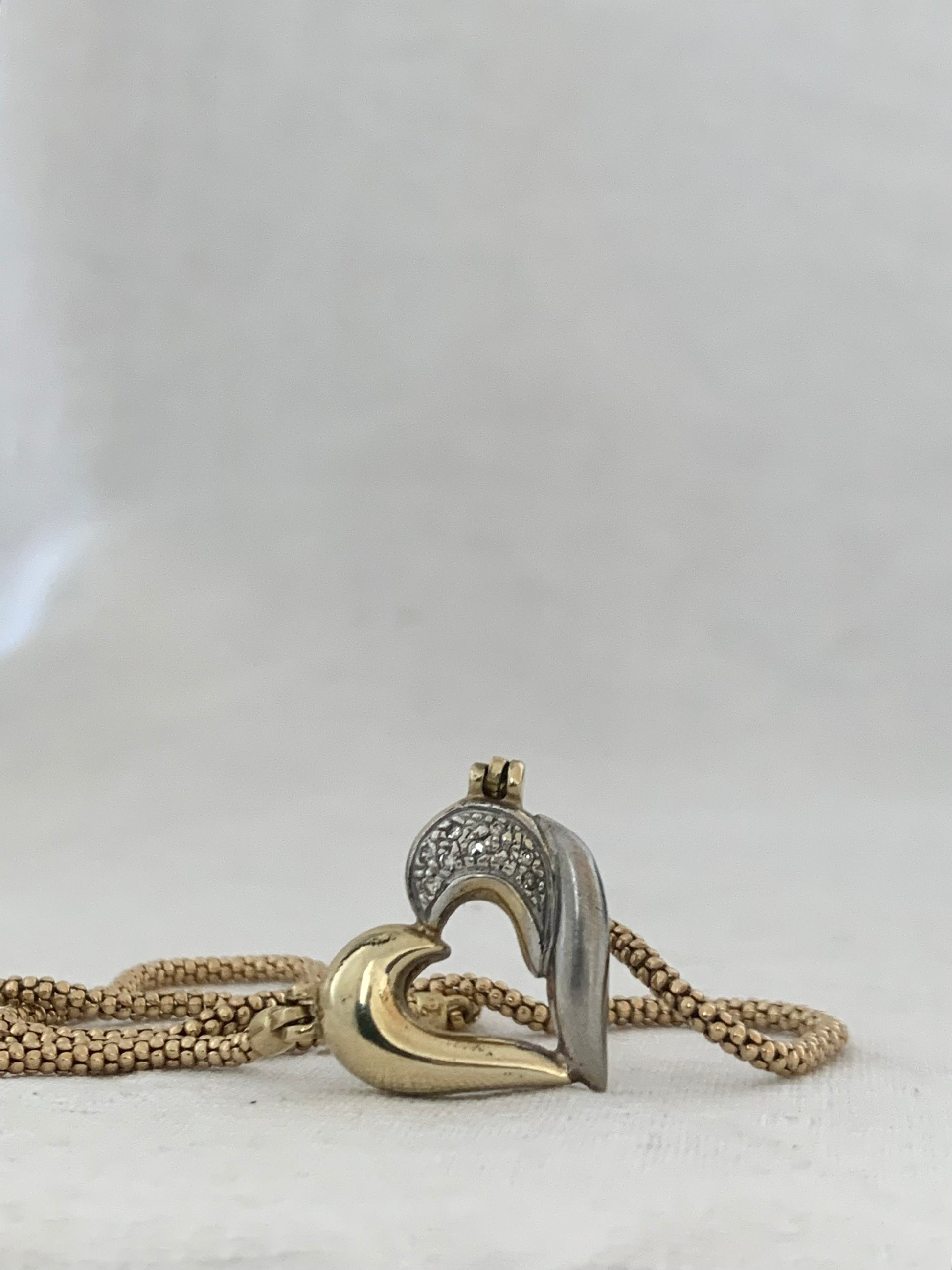 Classic symbol of love and devotion - an exceptionally well made retro celebration 9ct two tone yellow and white gold heart necklace.